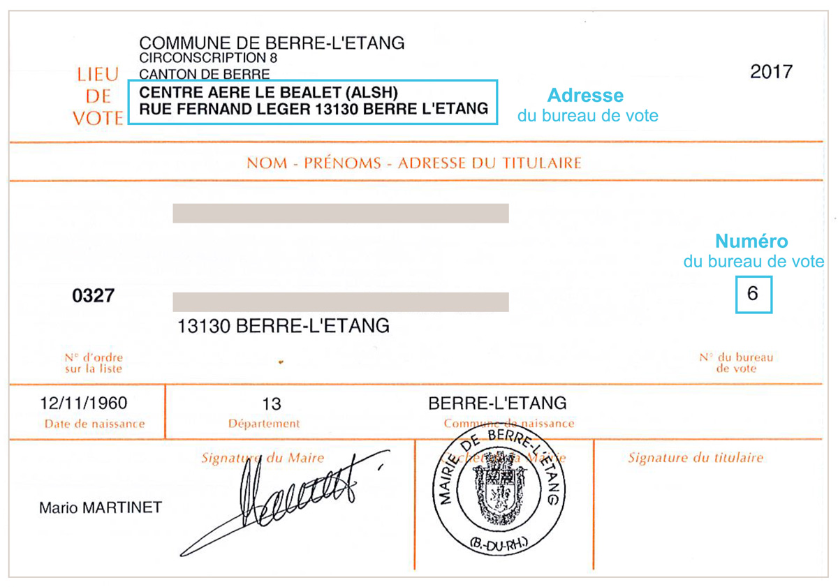 Le nom de votre bureau de vote est indiqué sur votre carte d’électeur.
