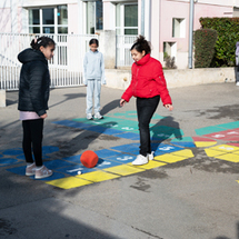 Des aménagements ludiques et sportifs dans les cours de récréation encouragent la mise en mouvement et la pratique d’activités physiques et sportives et de motricité dans les cours d’écoles, tout en favorisant une appropriation équitable garçons/ filles.